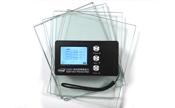 將LS201數(shù)碼玻璃厚度儀緊貼夾膠玻璃一側(cè),按下測(cè)量鍵就能顯示夾膠玻璃總的厚度,或者顯示兩層玻璃的厚度(兩層玻璃厚度相加就是總的厚度)。