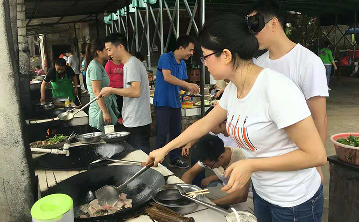中午你來洗菜我做飯,一盤盤美食端上桌,大伙一起品評勞動的收獲。