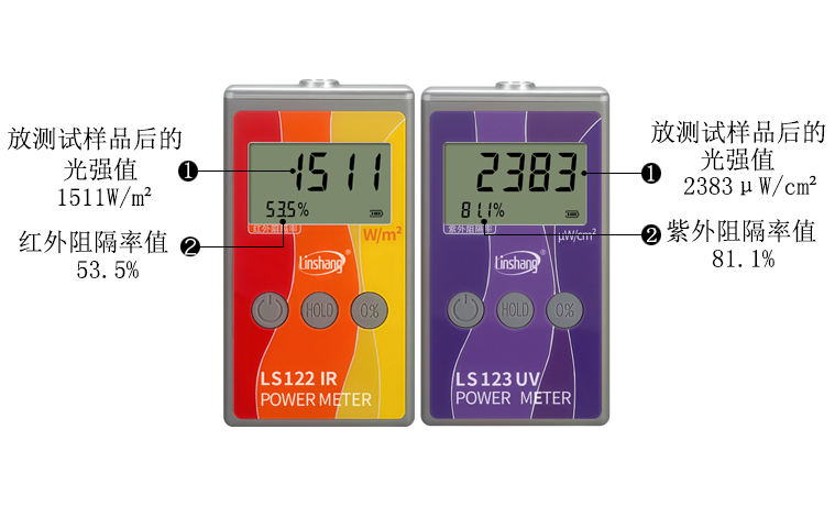 3. 紅外功率計和紫外功率計自動換算阻隔率,讀數簡單易懂。