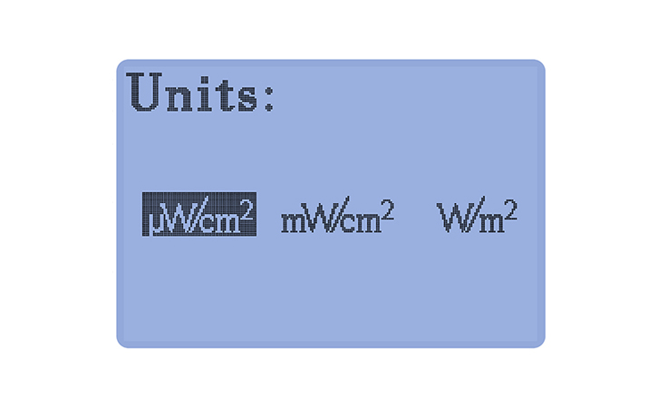 4. 可切換3種測量單位,分別為μW/cm2 ,mW/cm2,W/m2不同單位之間的數據轉換無需人工計算。