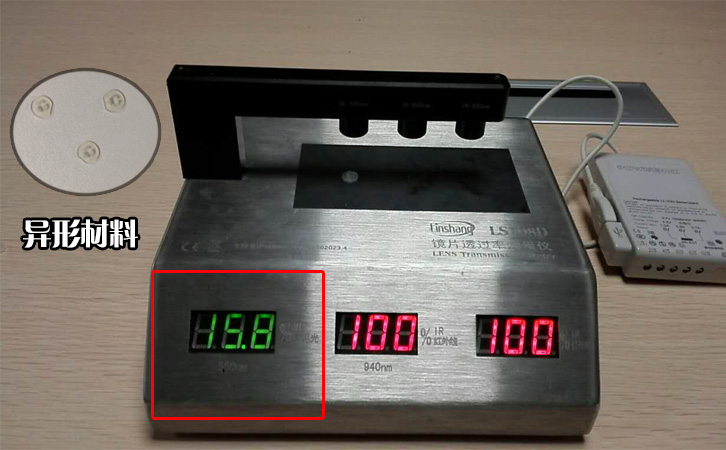 IR油墨測試儀LS108A和LS108D,主要應(yīng)用行業(yè)是手機(jī)鏡片,紅外油墨,后來有客戶把儀器應(yīng)用到了紅外濾光條行業(yè),今天要說的是IR油墨測試儀使用新方法,測試的材料是一個異性材料,具體使用行業(yè)不清。