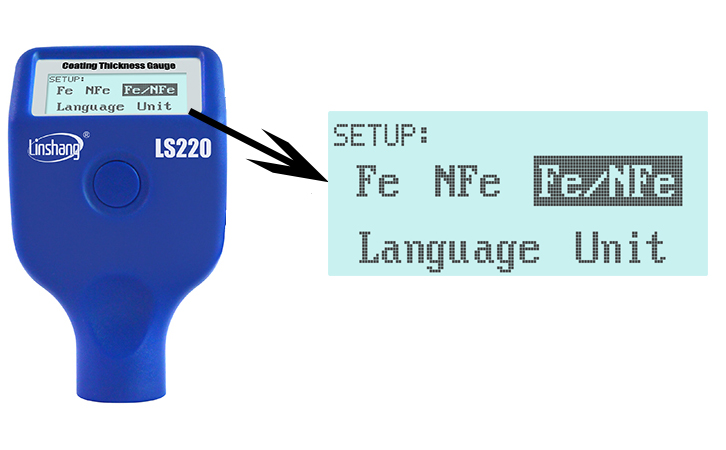 林上LS220涂層測厚儀具有三種測量模式,分別為Fe,NFe,Fe/Nfe。建議使用自動識別模式,儀器會自動識別基底材質并自動轉換模式。