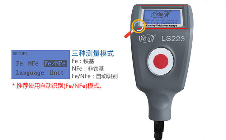 鍍層測厚儀LS223的Fe/NFe模式下,則是結合了這兩種原理,可以兩種不同基體下快速轉換測量模式。