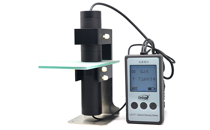LS117光密度儀的最小測試光孔是2mm,測試精度最小能達到±0.02,透光率分辨率能達到0.0005%,對一些透過率極低,精度很高的材料非常適用。其次LS117光密度儀使用方法很簡單,配備固定座,有兩種測量方式,小的材料放可放在固定座上測試,大的樣品需要拿出接收器和光源,手動對準測量(LS117不像LS116有自動吸合功能)。