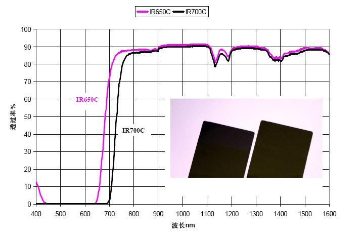 ??? 這種材料的特性在于在可見光范圍內(nèi)給予黑色視覺,但能透過800-1600nm以上波長(zhǎng)的近紅外區(qū)域,紅外透過率根據(jù)部件的厚度、工作波段和顏色要求,可以從80%至93%不等。