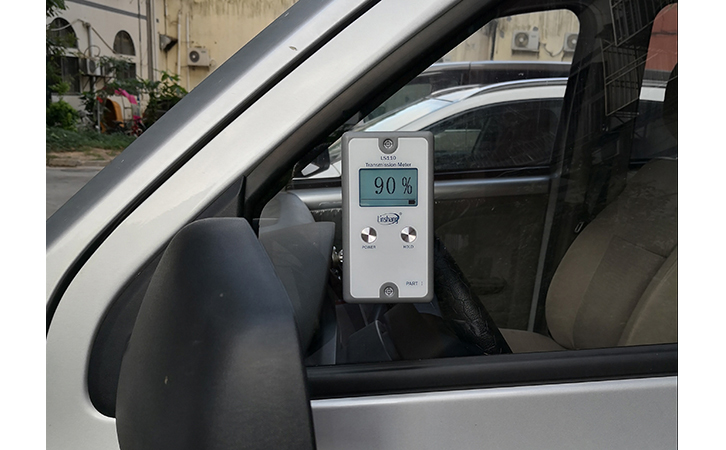 在亮窗行動的這段時間里,交警查處了很多面包車的前擋和側擋玻璃都貼了違規的太陽膜和車身貼,這些違規的太陽膜存在很大的安全隱患,可用LS110分體式可見光透過率測試儀測量面包車太陽膜的可見光透過率。