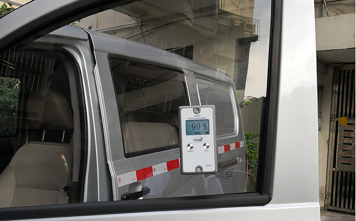 在這次“亮窗行動”中, 交警人員會通過透光計來檢測車窗貼膜后的透光率,用無線分體的透光率計LS110能準(zhǔn)確測量出車窗的透光率。