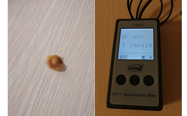有客戶將他們的參片寄過來,檢測光密度值,雖然不知道客戶需要檢測紅參片的光密度有什么用處,但是林上的LS117光密度儀是可以測試這種小物件的樣品。