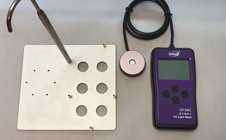 5.紫外線探頭置于被檢紫外燈管下垂直距離1米的中央處測量。