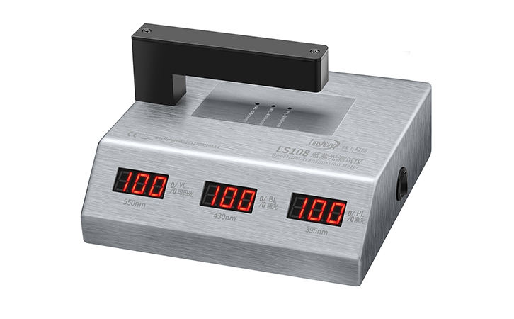 LS108鏡片透過率測試儀,主要測的是綠光550nm的透過率,藍光430nm的透過率以及紫光395nm的透過率。讓我們可以根據客戶的要求定制藍光波段410nm、430nm、450nm、470nm,還有白光波段380nm-760nm符合CIE國際明視覺函數標準。