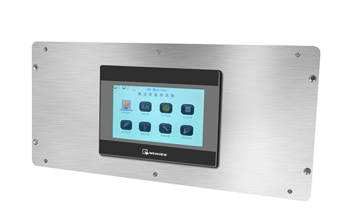人機界面左上角有一個溫度測試功能,可以測到測控主機內部的溫度。實時監測功能:這個功能是根據定制的點數來顯示的,如果是3個測試點,就顯示3組測試點的數據。還可以通過設定上限值和下限值,檢測產品的品質。當檢測到產品超過了我們設定的上限值和下限值,報警燈就會自動報警。還可以自由切換成透過率或者光密度的顯示方式。