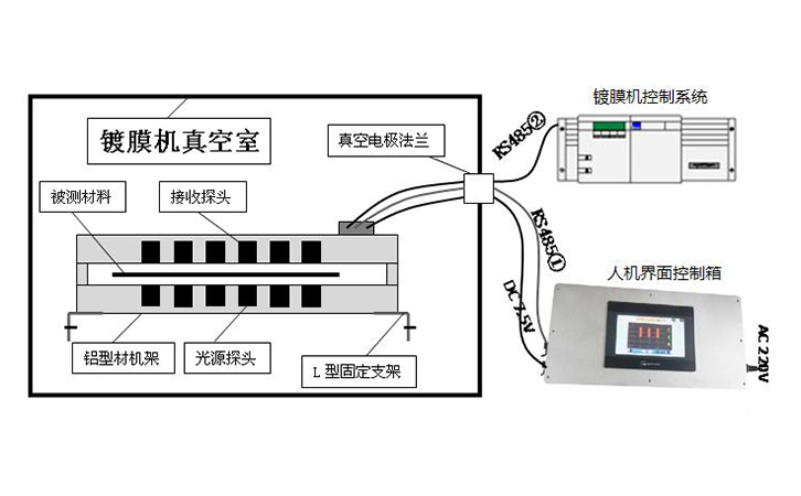 林上LS152薄膜在線測厚儀不單是只有這些,它還提供了雙路的RS485通訊接口和標準的MODBUS通訊協議,方便和PLC,單片機,人機界面,組態王,電腦等通訊,還能直接讓鍍膜儀讀取LS152薄膜在線測厚儀的光密度數據,實現控制自動化(閉環控制)。